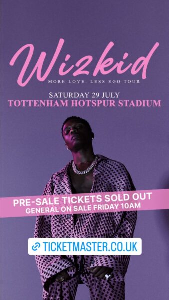 Wizkid sells out his Tottenham Stadium pre-sale tickets.